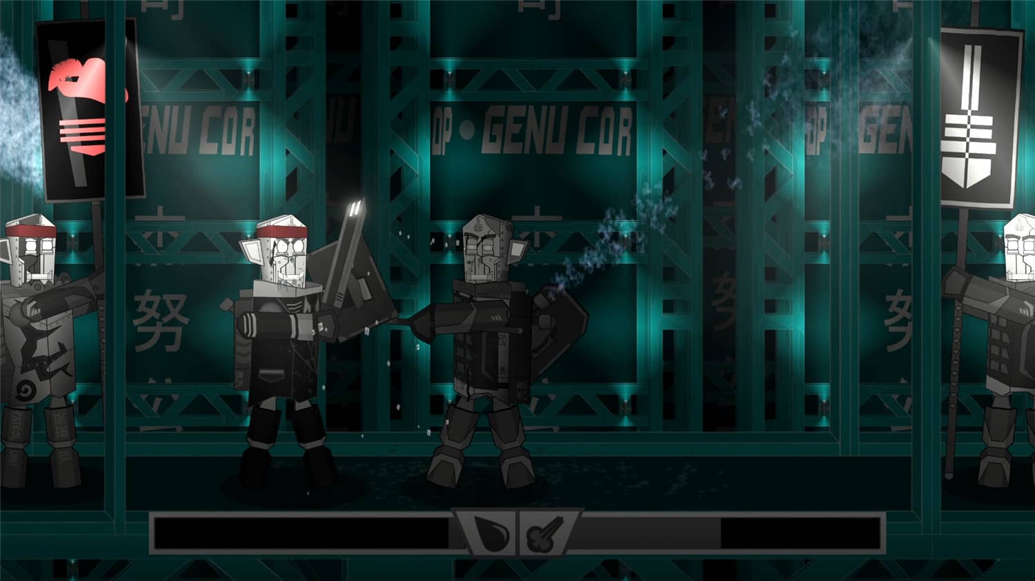 一个以荒诞的机器人独裁社会为背景的角色扮演战斗游戏。被禁止的头饰唤醒了你的意识。在紧张的决斗中击败所有反对你的人。点燃起义之火,带领你的部队作战,决定杰努公司的命运。