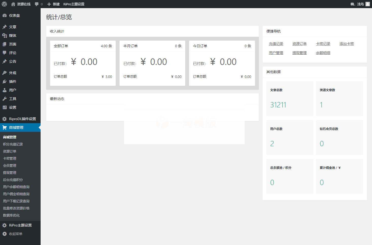 还不错自带了RiPRO主题,包含素材资料,网站源码,网赚教程,营销软件,软件工具,技能学习等5大分类,