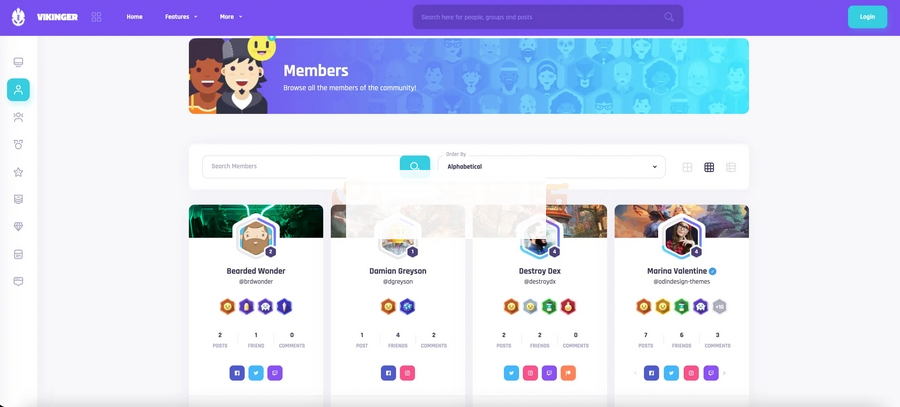 Vikinger是国外非常流行的一个WordPress + Buddypress社交社区!颜值在线,通过完整的个人资料、动态、小组、徽章、任务、等级、积分、论坛等完善的功能,它既可以作为个人博客亦可以作为交流社区论坛,可以让你很方便的建立一个社交论坛型网站!
