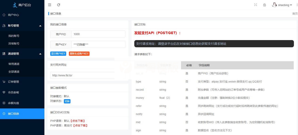 此免签码支付系统,兼容易支付接口,系统为多商户管理,商户额度控制 充值额度设置 订单时间设置 商户购买套餐设置 注册设置 域名设置(单独通道域名) 公告设置 商户通道管理等。