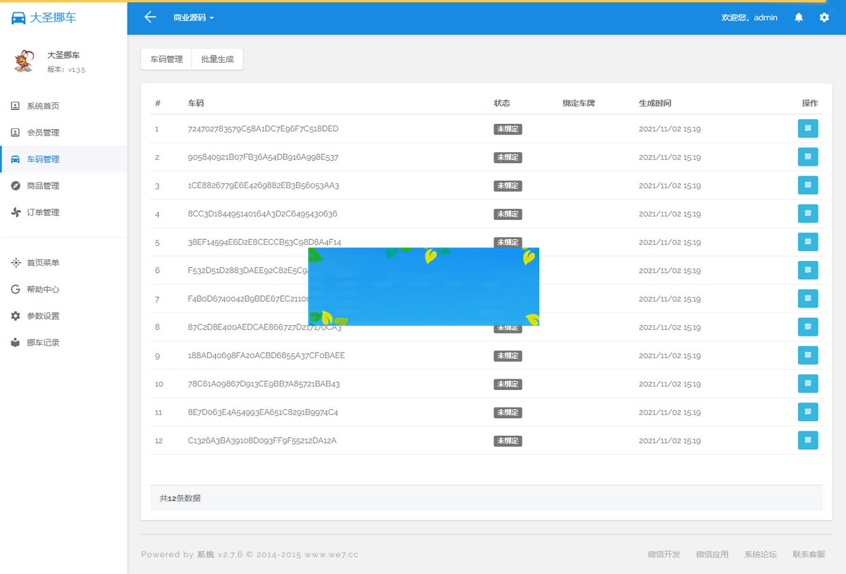一键挪车,隐私号设置,微信消息通知在线下订单购买挪车码后台广告自定义,文案自定义,各种自定义绑定界面新能源车辆和授权当前微信手机号