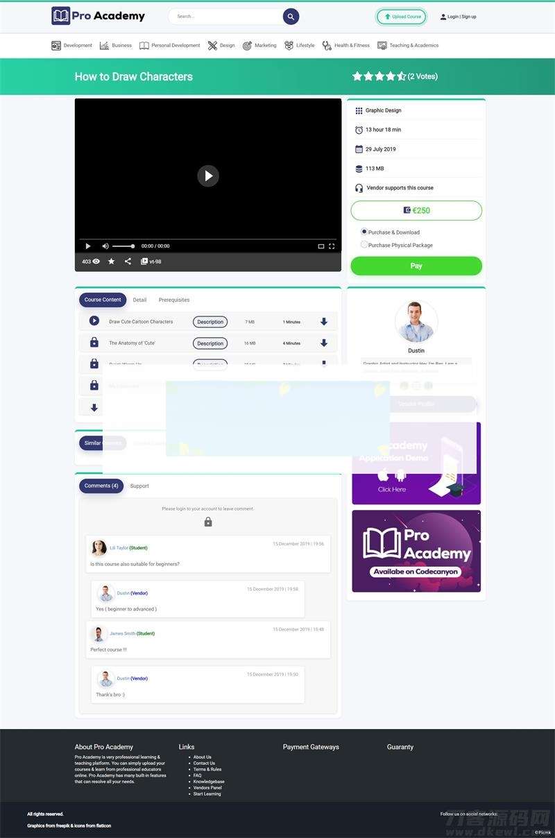 Proacademy是在线教育一体化的解决方案,用于创建类似于Udemy、SkillshAre、Coursera这种在线教育市场。