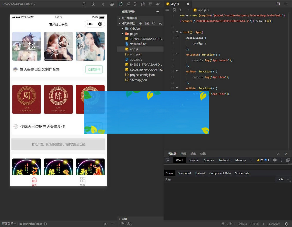 安装方法还是老样子,微信开发者工具打开源码然后设置一下合法域名即可上传审核