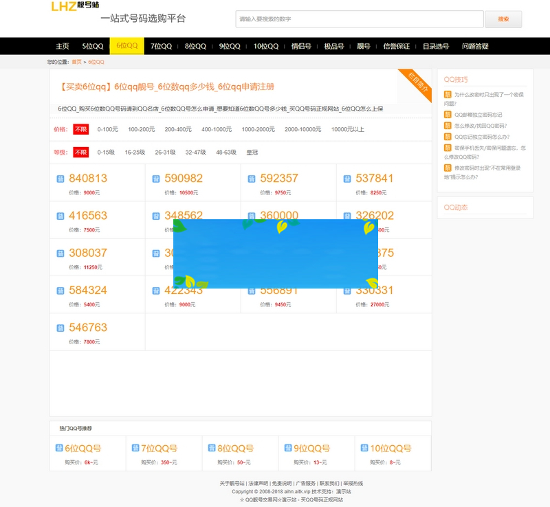 帝国CMS仿号码交易源码,QQ靓号商城源码,适配移动端整站源码。不仅可以用来做QQ靓号交易平台,改一改还可以做YY号码等虚拟号码交易平台。