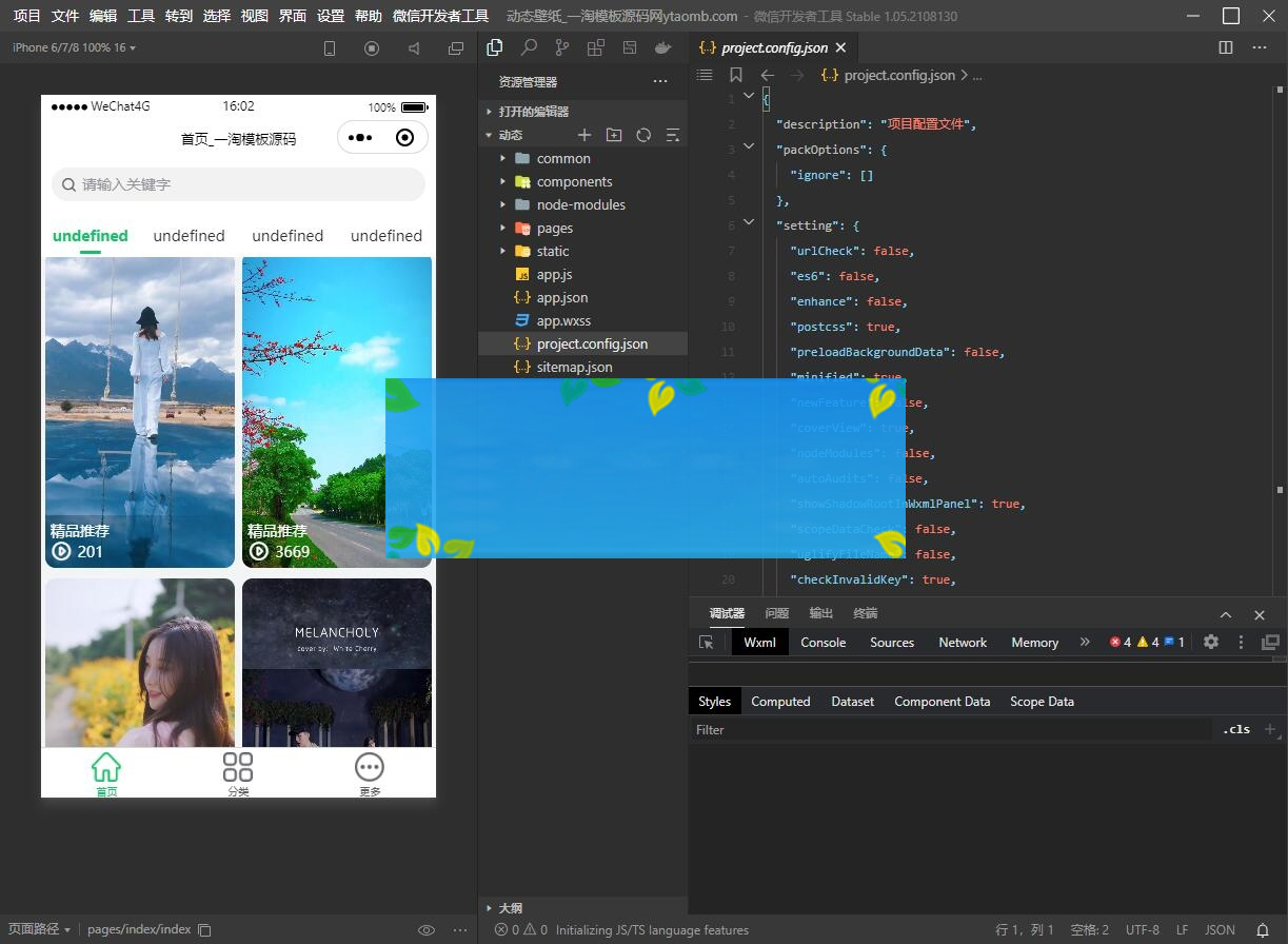 这是一款主打动态视频壁纸的一款微信小程序源码,当然啦,里面也是有静态壁纸的。