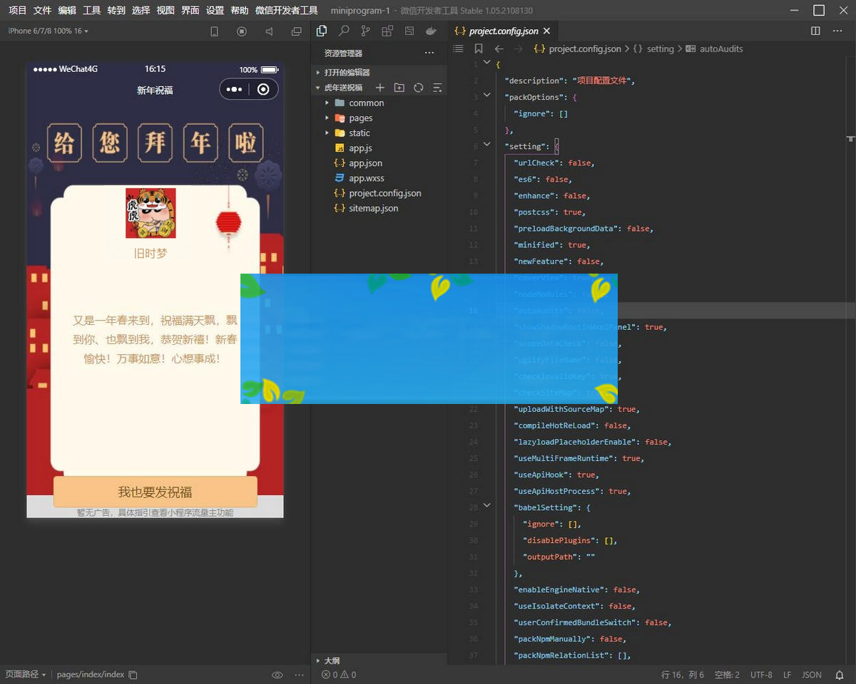 2022虎年春节拜年祝福语微信小程序源码下载,该小程序的作用就是祝福语生成。