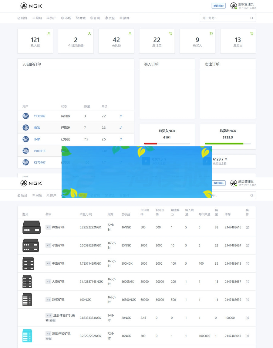 thinkphp6+mysql开发的NGK矿机区块链挖矿系统